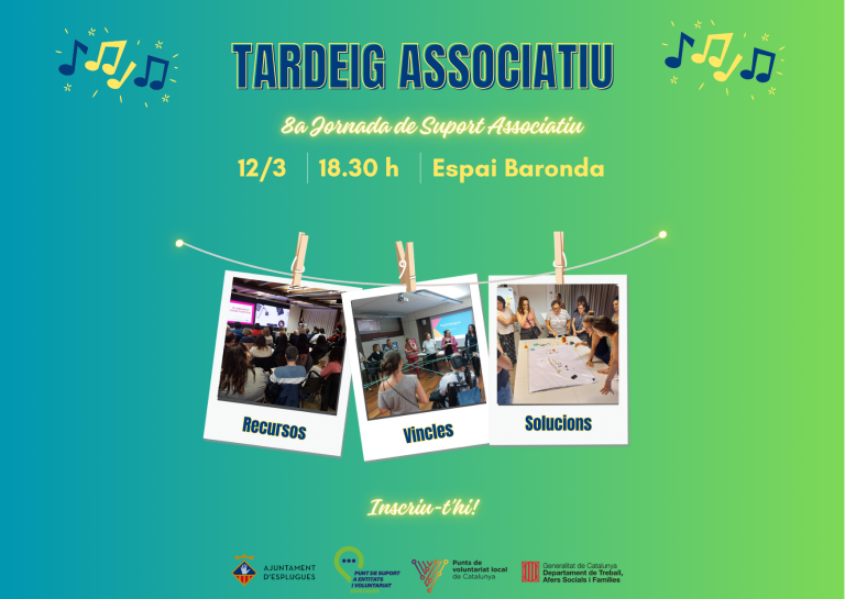 L’Espai Baronda serà l’escenari, la tarda del proper 12 de març, d’una nova Jornada de Suport Associatiu: Tardeig Associatiu. Una trobada adreçada a…